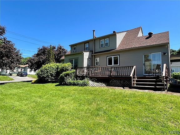 Here is a 4-bed, 1.5-bath house that is ready to become your new home in the Historic District of Oswego. Located just moments north to Lake Ontario, the Oswego Harbor and Breitbeck Park and east to Downtown Oswego's restaurants, shops and parks, this house is move-in ready. This corner lot home has a large living room at the front of the house. The dining room and kitchen overlook the spacious backyard, complete with deck and shed. There is also a main floor bedroom, an office /den space and a half-bath. The second floor has three generous bedrooms and a large full bath. The sunroom on the first floor opens to the back deck and is also home to the laundry, complete with washer & dryer. Some new features to this listing gem include: Tempstar 80,000 BTU, 96% efficiency, natural gas furnace, Bradford White natural gas water heater, Installation of an updated city water meter, Amana Dryer, GE High Efficiency Top-Load Washer, and Installation of aluminum gutters and downspouts on entire house. Rarely does a house like this become available in this neighborhood.