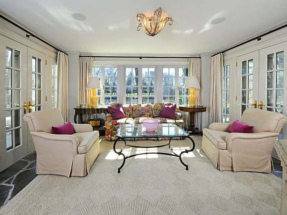 Embracing the enchanting beauty of over one-half acre on Milbrooks upper lake, this sophisticated designer showcase masterfully blends English-inspired romantic charm with 21st century elegance. Completely rebuilt with impeccable craftsmanship, extraordinary architectural detail and state-of-the-art smart home technology, the chic 5,700+ square foot interior is resplendent with remarkable millwork, gracefully arched doorways, quarter-sawn oak floors, imported lighting, antique appointments and custom French casement mahogany windows. Multiple French doors provide fabulous indoor/outdoor flow to a stunning 1,100+/- square foot blue stoned lakefront terrace with built in Italian pizza oven and grill.Elegant 3-exposure living room with fireplace opens to wonderful slate-floored sun room with French doors to rear and side terraces. There is a grand-scale dining room; magnificent 3-exposure family room with Chesney English limestone fireplace; and spectacular gourmet kitchen with 6x8 walnut center isle, limestone countertops, Walter Zanger tiles, incomparable Lacanche range/double ovens, 2 SubZero refrigerators, 2 Miele dishwashers, additional Dacor oven. French doors in bay-windowed breakfast room lead to delightful screened porch adjoining the terrace. Two lovely main floor powder rooms; 5 bedrooms, all with gorgeous lake views; 5 electric-heated Waterworks baths. Romantic master suite features French doors to private lakefront balcony; marble fireplace; built-in accessory cabinetry; his/her walk-in custom closets; sumptuous bath with scallop-motif marble flooring; Perrin & Rowe fixtures, soaking tub large shower. Lake view guest suite with sitting room, plus childrens play area on third floor. Gym, playroom, wine cellar, 1½ baths on approximately 2,000 SF lower level opening to covered stone porch and lakefront lawns. Generator; heated 3-car garage.