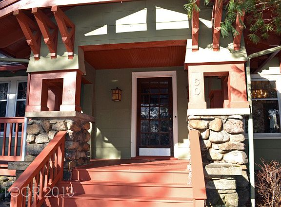 step into this 1913 five/six bedroom, three bath arts and crafts style home situated on an acre of corner, parklike property and you will step back in time as you admire the chestnut detail, builtin features w leaded glass cabinetry, brick fpl, wood burn stove, and dramatic chestnut staircase to the second and third level. first floor features formal dining room, formal liv rm w fpl and access to sunroom, study/cozy family room w wood burning stove and access to sunroom and lemonade porch, great room w vaulted ceiling, wetbar and doors to stone patio/yard/hot tub, modern eat in kitchen w access to brick patio, fullbath, and back staircase. the second floor feature 4 bedrooms (one of which is used as a dressing room to the masterbedroom), masterbedroom w masterbath, and fullbath. the third floor features an office (possible sixth bedroom) and unfinished, floored attic space which may be finished. the unfin basement offers storage, laundry area, and outside access. 2 car plus gar w loft. simply charming. - Basement: unfin, storage, laundry, o/e