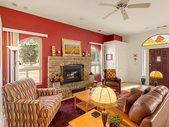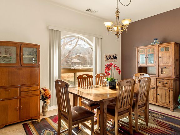 This single level home is nestled on a flat 1.11 acres that has ditch irrigation. The kitchen has granite counters, black and stainless appliances, an island and it is open to the family room. Living room has a cozy brick fireplace. The formal dining room is perfect for family and friends gatherings. You will enjoy the private fenced patio with a relaxing spa. The grounds include a 384sf Casita, a 10x20 insulated shed, and an 18x18 barn. Property is cross fenced for animals and has 6 Pecan trees and a rose garden. The master bedroom has a jetted tub, walk-in shower and large walk in closet. This is a very loved home in a beautiful setting.