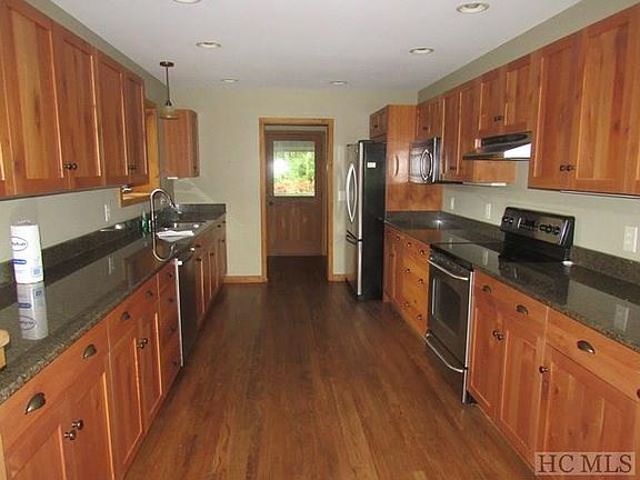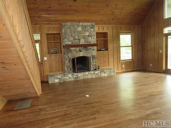 Wonderful 4BR/4BA mountain retreat on private lot in High Hampton Inn development. Gleaming hardwood floors, wide-plank paneling, screened porch, vaulted ceilings and a stone fireplace are a few of the many special features throughout this unique home. There is a large open porch in addition to the cover screened porch to enjoy the fresh mountain air.