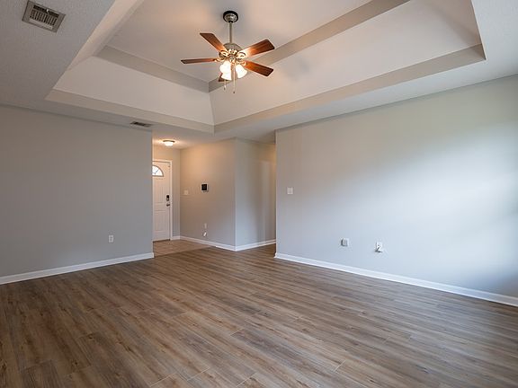 Welcome home to this freshly updated 3bed 2bath home on a corner lot & OVER half an acre. Brand new LVP floors throughout the home with tile in the kitchen and bathrooms. The entire interior has been freshly painted INCLUDING all cabinets! A large living area with tray ceiling and lots of natural light. The kitchen features freshly painted cabinets, never before used stove/oven combo & microwave, fridge less than a year old and dishwasher less than 6 months old. The large primary suite has TWO closets, double sinks and a tub/shower combo with large soaking tub. The back yard oasis is the place to be on this property! A beautifully built pavilion with a built in grilling/entertaining area, fire pit and large fenced in back yard that backs up to the woods for extra privacy. Security system available and termite bonded. Listing agent is related to the seller.
