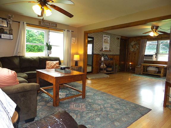 This modified singlewide ranch home presents a seamless blend of comfort and functionality. As you step inside, you're welcomed into a cozy den area that flows into the living room, extending then to the open kitchen/dining rooms where a sliding glass door leads to the deck, seamlessly merging indoor and outdoor living spaces. There are 2 bedrooms, a home office, and a full bathroom with laundry completing the first floor. The lower level features a one-car under garage offering additional storage options, utilities and an additional bedroom. $5000 buyer credit towards leach field replacement at time of closing. towards