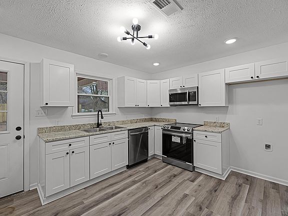 - Blown/Textured Ceilings, Eat-in Kitchen, Granite Counters, Single Vanity, Tub Shower Combo