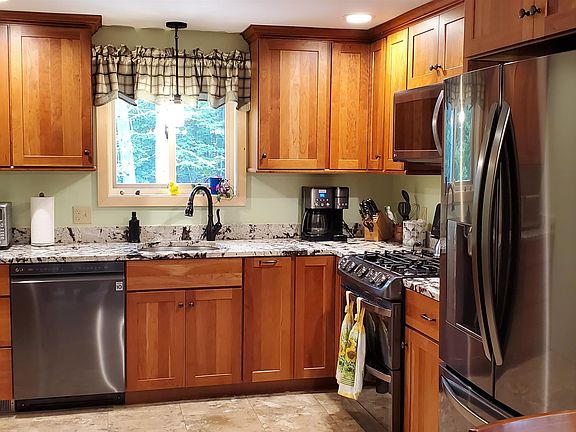 Beautifully renovated Green Hill Estates Duplex! This Saltbox style home has a new custom cherry, granite and stainless kitchen and new cherry and granite bathroom vanities. The windows, roof, porch, boiler, oil tank, water filtration system, wood stove and appliances are all new within the last 4 years. The full unfinished basement has the potential to be finished off for additional living space or used it as a workshop. This 3 bedroom, 2 bath home has a nice yard with a wonderful vegetable garden. Plus six cords of firewood for the woodstove are included! This home is located in a quiet spot yet is close enough to enjoy all that the Mount Washington Valley has to offer. Check it out today!