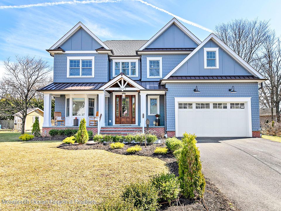Welcome home to beautiful Oceanport. Builders personal custom 4 bedroom 2.5 bath home newly constructed in 2019 situated in one of Oceanport's most desired neighborhoods, tucked back in a private setting. The moment you pull up to this home you are greeted with a rocking chair front porch with Mahogany ceilings and Blue Stone porch. Enter through the 8' Mahogany front door with 3/4 glass, you'll love the 7 1/2'' wide Siberian Oak wood floors with natural oil finish. Featuring a House Of Cline custom designer kitchen, California faucet, Emtek hardware throughout, custom light fixtures, Spa like master bath with Marble and Restoration Hardware vanity, custom closet organizers, full walk-up attic, high and dry unfinished basement. Minutes to Beaches, Parks, Ferry Service to NYC.