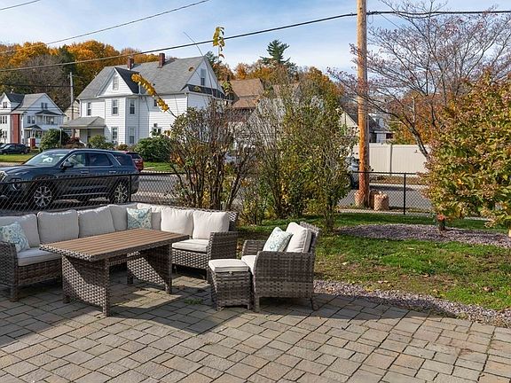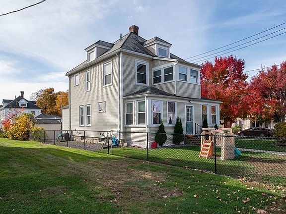 Move-in ready American Foursquare home on a sunny corner lot. This charming home has been updated & remodeled to meet today's demands. Kitchen w/stainless steel appliances, granite counters, and soft close cabinets. The heating system was converted from oil to gas in 2018 and insulated vinyl windows make this home energy efficient. First-floor full bath w/walk-in shower, open floor plan w/dining room, living room, French doors, large front entryway, mudroom, 1st-floor laundry, and sunny 3-season front porch. The second floor features a large primary bedroom w/a walk-in closet and room for a home office or flex space, 2nd corner bedroom, and 3rd front bedroom w/a private sunroom. The home enjoys hardwood flooring throughput. A full attic walkup is accessible through the 3rd bedroom and would make an amazing suite/studio or play space. A completely fenced-in grassy yard wraps around the house and is met w/a large stone patio out back.