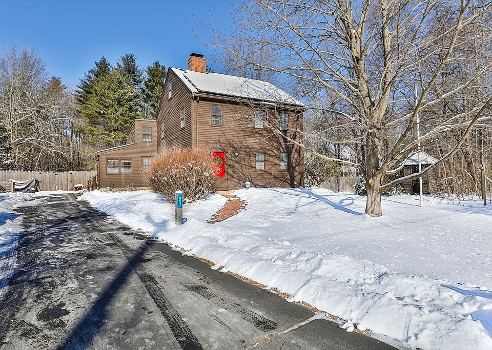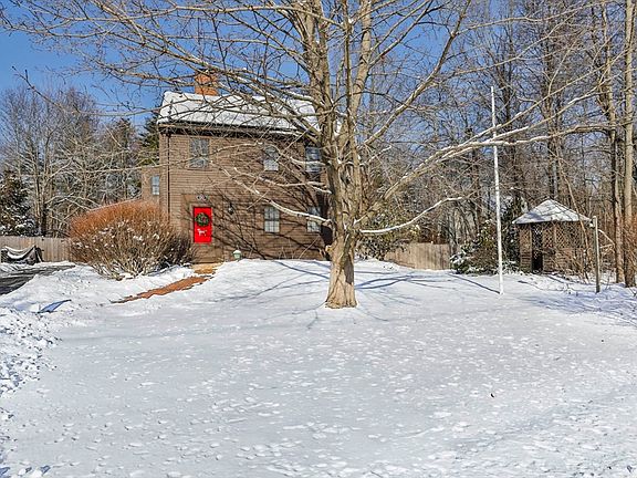Nestled on over 1.5 acres of serene countryside, this lovingly maintained antique Colonial blends historic charm with modern updates. Surrounded by organic gardens, mature perennials, and a picturesque granite flower bed, the property features a private deck, treehouse, chicken coop, and storage shed. Inside, enjoy a welcoming mudroom leading to an open, eat-in kitchen with a large pantry and picture window overlooking the wooded backyard. The family room boasts wide pine floors and fireplace while the formal living room offers a cozy wood stove. Upstairs, the primary bedroom charms with a wood-beamed ceiling and fireplace, accompanied by three additional bedrooms. Recent updates include refinished floors (2021), new wood stair treads (2021), a new fence (2023), and custom shelving in closets. Energy-efficient solar panels and an upgraded electrical panel (2016) add to the appeal. Located in a great commuter spot, this gem offers both character and convenience.