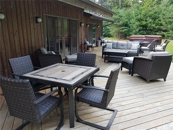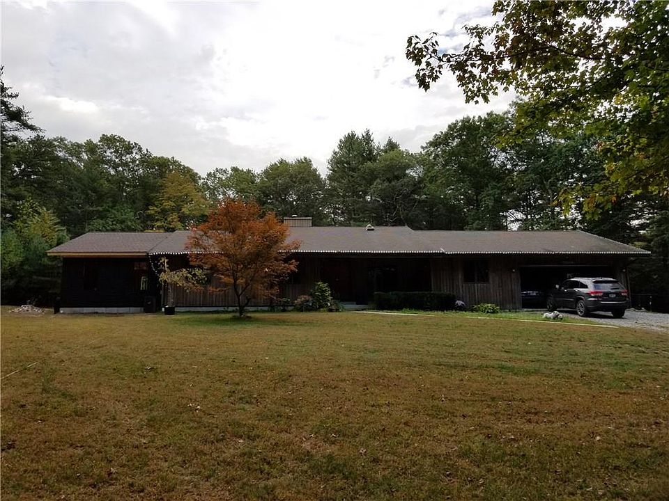 Private Sprawling Ranch set off the road on a 4 acre wooded lot on Widow Sweets Road featuring a large living room with Cathedral Ceilings, Hardwood Flooring, and 4 panel slider leading to a large deck, Dining room with slider to Deck, large newly renovated kitchen, breakfast nook, double door entry with slate floor. Large master suite with cathedral ceilings, walk in closet and slider leading to deck. Oversize garage with depth to accommodate multiple cars, detached storage garage, first floor laundry and much more.