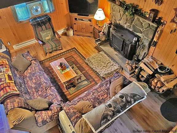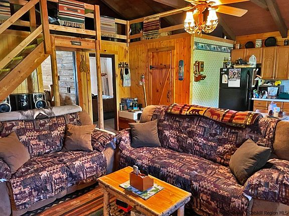 Welcome to your Dream Mountain retreat! This charming two-bedroom cabin with a loft is nestled on a sprawling acre of pristine property has been lovingly maintained, offering you the perfect blend of tranquility and adventure. As you arrive coming over a sweet little bridge to the property, take a moment to soak in the breathtaking views of the majestic mountains that surround you. The deck, strategically positioned, provides a serene vantage point overlooking a gentle creek, where you can unwind and reconnect with nature. Inside, the cozy ambiance is enhanced by a wood-burning fireplace, creating a warm and inviting atmosphere for those chilly mountain evenings. The cabin's two bedrooms provide ample space for relaxation and privacy, while the loft area adds versatility to accommodate additional guests or serve as a home office. Whether you are seeking a peaceful escape or an outdoor enthusiast's paradise, this mountain cabin is the perfect sanctuary to call your own. Embrace the beauty of nature and create lasting memories in this idyllic mountain retreat. LESS THAN 10 MINUTES TO BELLEAYRE MOUNTAIN SKI CENTER