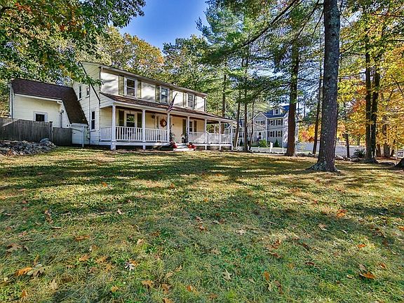 60 Wilmington exudes New England charm when you are greeted by its warm & welcoming wrap around porch! This move-in ready home boasts a spacious front to back living area with a fireplace, large dining room, & updated eat-in kitchen offering perfect opportunities to entertain. A special part of the layout is the large 1st floor mudroom/sitting room that also features a half bath & laundry area. Head out to the private, fenced backyard for dinner on the deck or a peaceful experience in the oversized yard. Upstairs you will find 3 bedrooms, including a spacious master with custom walk in closet and full bathroom. The home contains ample storage with a walk-in kitchen pantry and garage with attached shed. It is close to Routes 3, 128 & 93, a short distance to coffee shops, eateries and many other local businesses serving your everyday needs. Want to be close to recreational facilities? This one is only .5 a mile to a neighborhood park and .3 miles to the elementary school. A great find!