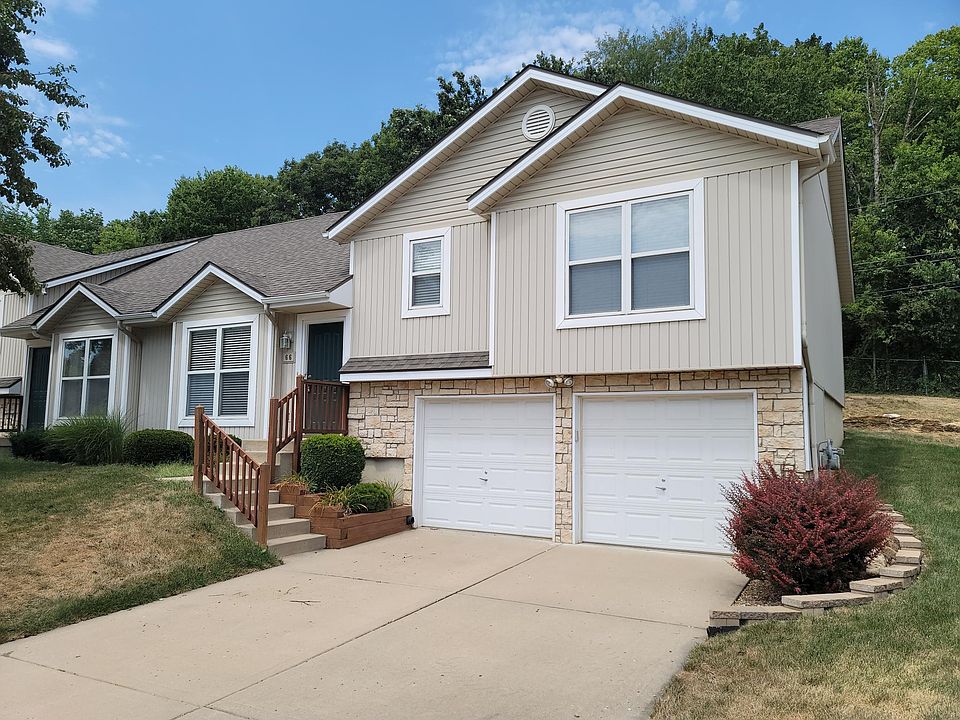 This spacious 3BR/2BA duplex has all the features of a single family home! Unit has new wood laminate flooring in kitchen and dining. Newer kitchen and dining light fixtures. NEW SS APPLIANCES The living room has 12' high vaulted ceilings and gas fireplaces. Abundant cabinet space and pantry in the kitchens. King size master bedroom with a walk-in closet and private bath. Two car garage with openers on both doors. NEW CARPET AND PAINT NEW SS APPLIANCES Convenient location to Leavenworth, St Joe and Kansas City. Well maintained. Lawn service is included. Renter pays all utilities $30 Application Fee $1650 Security Deposit 8,9,10 or 19 month lease NO VOUCHERS $600Pet Deposit ( 1/2 non refundable) , no pet fee; 50 lbs. limit Renter pays all utilities $30 Application Fee $1650 Security Deposit 8,9,10 or 19 month lease NO VOUCHERS $600 Pet Deposit ( 1/2 non refundable) , no pet fee; 50 lbs. limit