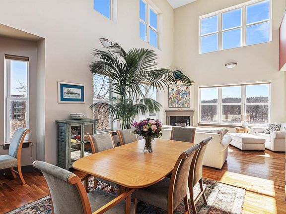 Experience luxury living at its finest in this stunning two-story, furnished penthouse at Cascades. Breathtaking views of the Winooski River greet you from this open, modern design layout featuring high vaulted ceilings. The gourmet kitchen boasts a large island, premium countertops, and top-tier appliances, perfect for entertaining or everyday living. Elegant cherry hardwood floors and abundant natural light fill the dining and living area, where you can enjoy the scenic Winooski River year-round. A cozy living room gas fireplace brings warmth and romance for special occasions. The spacious primary suite offers a luxurious bathroom and walk-in closet. A second bedroom connects to a guest bathroom with convenient laundry facilities. Off the main entrance welcomes you into a generous bonus room, ideal for a home office. Upstairs, a sizable loft for more living space includes its own balcony that overlooks the picturesque surroundings below. The secure garage provides two designated parking spaces, storage, and elevator access. As a resident, you'll also enjoy a gym and club room, plus an inviting outdoor area with a firepit by the river. HOA fee includes Vt Gas fuel for the heat, gas range, dryer, fireplace in the living room and for the hot water! Located in the heart of downtown, you're steps away from popular restaurants, the Farmer's Market, scenic trails, public transportation, and just minutes from UVM Medical, I-89, and downtown Burlington.