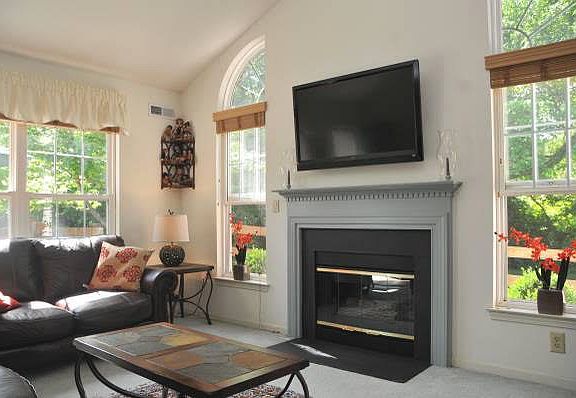 Move-in Condition is this Partially Brick Front Colonial that features 3 Bedrooms, 2 1/2 Bath 2-Car Garage Unit that is nestled in the Desirable Pennington Point Active Adult Community! Open concept opens through the front door! Clean & Bright is found through the Brand New Carpeting & Freshly Painted Rooms! Spacious Living Room area offers vaulted ceiling, gas fireplace with wood mantle & slate around, ceiling fan plus possible Desk area. Large Dining Room invites endless possibilities with entertaining Family & Friends! Kitchen area includes counter space with ledge for bar stools, stainless steel double sink, stove, microwave, pantry, cabinetry with upgraded hardware plus a skylight offering additional sunlight into the Kitchen that adds to the track lighting. Main Floor Master Bedroom features vaulted ceiling, walk-in-closet, ceiling fan; Private Master Bath contains tile stall shower, large single sink vanity with plenty of counter space plus a separate linen closet. Large size 2nd Bedroom is in close proximity to the 1/2 Bath that offers a ceiling fan plus plenty of double door closet space with shelving. Off the Kitchen is the Laundry area with cabinetry for storage. Up the stairs to the 2nd Floor Bedroom offers Privacy for your Guests - vaulted ceiling, walk-in-closet, additional area for a Desk plus its own Full Bath with tile tub/shower! Additional Features Include: 2-car garage with opener with an additional space for storage & Front porch patio! Great Location! Pennington Point has a Club House with exercise facilities, library and a large gathering room! Close to Major Highways, Shopping, Restaurants & Parks! Worth a Look!