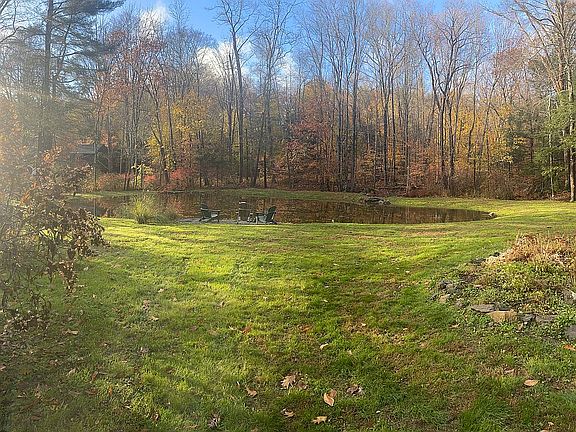 Lovingly restored antique with original and hardwood floors throughout, spacious kitchen / family room with cathedral ceiling and access to large covered porch overlooking pond and landscaped mature grounds, master suite on main, state of the art appliances and new infrastructure, 2 year old hand split wood shake roof and one bedroom guest house, privately situated on grounds. Address is in one of the most desirable locations in the county, just off the Green. All interiors and exterior is freshly painted and updated. This home is rich with character and quintessential New England.