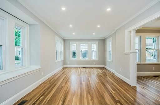 Stunning condo recently renovated with superior craftsmanship and high quality building materials. Centrally located on a tree lined street, and only .03 miles from Arlington Ctr. This 2 bedroom features open concept living area & sun drenched living room w/crown molding, hardwood floors & recessed lighting. These features carry through to the dining room & gourmet kitchen w/ss appliances, dual fuel range, granite counters, tile back splash & quality cabinets w/under cabinetry lighting. Mudroom area & in-unit washer/dryer hook-up. Bedrooms w/hardwood floors & closets. New bathroom w/tiled shower/tub, kohler fixtures & tile floor. New interior doors. Heated Sunroom. Exterior updates, new architectural Certainteed Landmark roof, new Certainteed Monogram siding, new Anderson & Harvey windows, new Therma Tru exterior doors. Newly rebuilt decks, Azek decking & railings. New exterior lighting, walkways, fence & driveway. Forced Air Gas & Central Air. Parking & Garage. Designated storage area