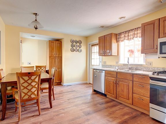 A beautiful cape with 3 large bedrooms, 3 full baths, remodeled kitchen with gleaming Pergo wood floor, stainless steel gas range, dishwasher and microwave with new marble countertops. The first level features a spacious living room with gleaming Pergo wood floor, full bathroom with ceramic tiles, as in all the bathrooms, and a beautiful master bedroom with a large walk-in closet. The second level has 2 large bedrooms with great closets and a full bathroom. Finished family room in lower level with wall to wall wood panel, and Pergo wood floor, full bath with glass door and a large Linen closet. This Cape is central Air, with newly extended backyard deck, large fenced backyard and a storage shed. Garage under and 4 off street parking, a convenient location with minutes to RT 290 and 190.