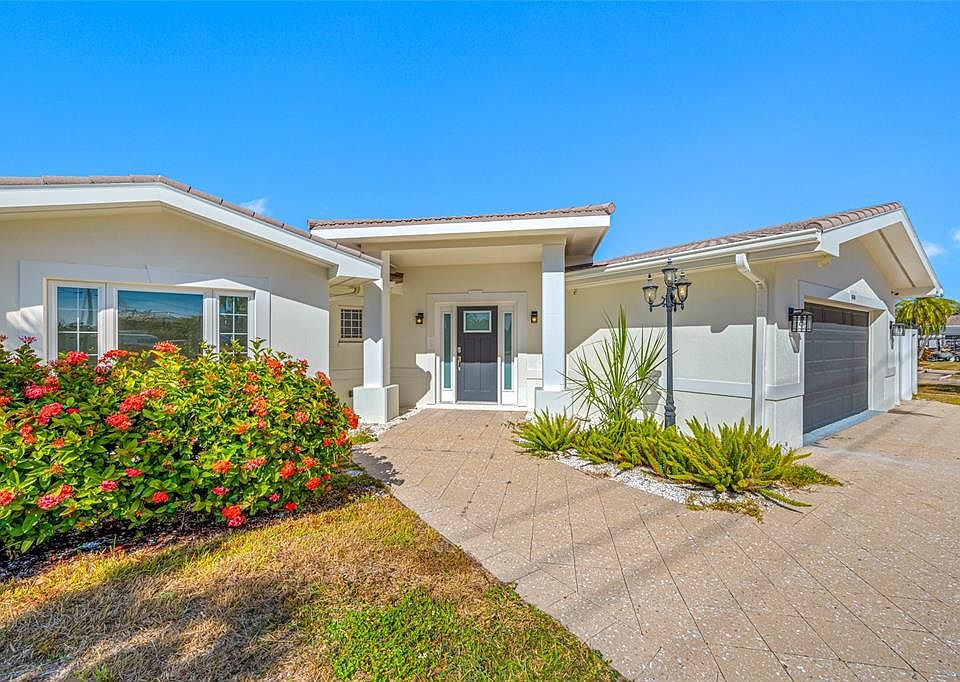 Waterfront Dream Home — 3 Bed, 2 Bath with 70 Feet of Prime Waterfront with Big Views. Discover the pinnacle of coastal living in this exquisite three-bedroom, two-bathroom waterfront retreat. Nestled on 70 feet of pristine inter coastal water frontage complete with newer seawall and dock, this home embodies luxury, comfort, and breathtaking scenery at every turn. Perfect for sunrise coffees, sunset sails and year-round water adventures,.Spacious Open-concept living (1855 Heated Sqft )and dining areas designed to maximize views from every angle. Large windows and sliding glass doors invite the outdoors in. The Gourmet Chefs kitchen has a generous island with seating and gleaming quartz countertops, ss appliances and gorgeous cabinets with ample storage. Suitable for family dinners and entertaining guests. Primary luxury suite with en-suite bath, walk-in closet, and water views. Two additional bedrooms with flexible use as guest rooms, home office, or hobby spaces. Two Full Baths completely updated and thoughtfully appointed with contemporary finishes, soaking tub or walk-in shower options, and premium fixtures. Immaculate Sparkling pool surrounded by professionally landscaped patio with plenty of space for outdoor seating areas for entertaining or quiet reflection. Attached Two-Car Garage makes for Convenient, secure parking with direct access to the home for easy entry and additional storage options. Huge circular driveway ensures plenty of parking spaces for guests. Enjoy the outdoor Florida tropical Coastal Living. Steps away from boating, kayaking, paddleboarding, fishing, or simply relaxing by the pool and the water’s edge. Short distance to the Beach, uniques shops and dining. This home is Move-In Ready. Make your appointment today and come start living the lifestyle of "vacation-living" all year round.