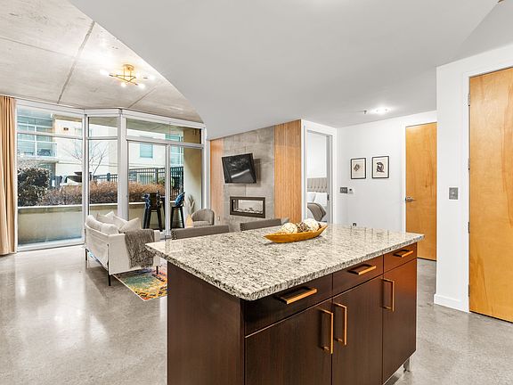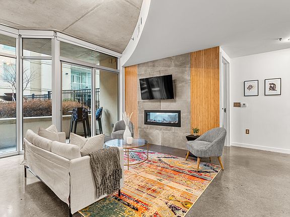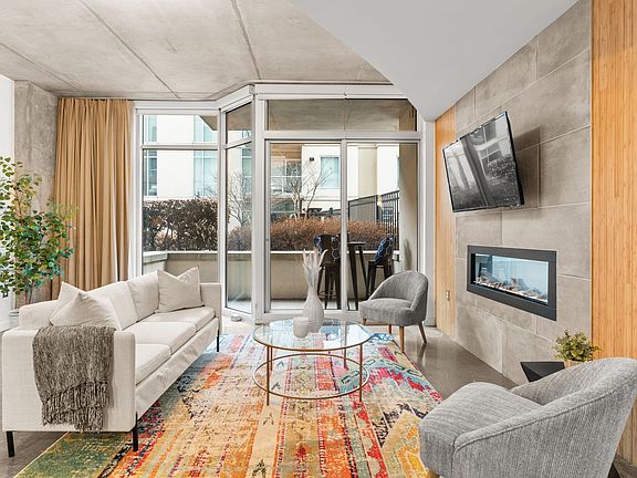 This modern true 1 BR is on the courtyard level facing Icon’s Zen garden and pool with private terrace. Amazing floor to ceiling windows, tons of natural light, polished concrete floors, 10 ft ceilings, custom blackout curtain and walk-in closet. Kitchen features huge granite island and new dishwasher. Large/open living area has plenty of room for desk/office space. Custom double-sided electric fireplace! Super convenient same floor parking is only steps away (1 spot included, Spot #440). Stacked washer/dryer. Amenities include 2 Pools, Fitness Center, Residents Lounge, Outdoor Entertainment, 24 hr Concierge and Security.