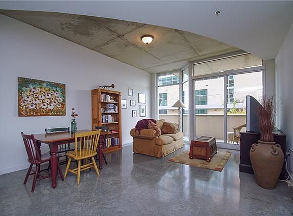 Amenity rich high-rise. Enjoy Gulch access to restaurants, night life & access to major transportation. Open plan w/ desirable walled in bedroom. Unit on same floor as pool,gym,grills-courtyard. Full size laundry, pantry, spacious bath, walk in closet.XL balcony. Stainless appliances,granite tops. Large, end parking spot conveys. NEST thermostat.