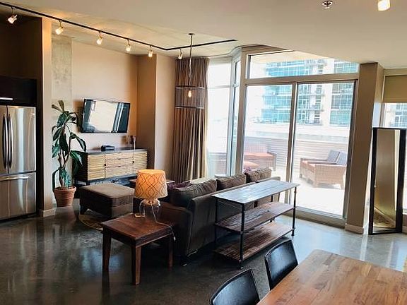 Don't Miss Out on this Gorgeous Condo located on the 9th Floor/Amenity Level -- Offered FULLY FURNISHED Open Floor Plan w/ Dining /Study nook 1 BD 1.5 BA ; 824 sq ft w/ Extra Large Patio $2300 per month/ plus $1000 Deposit ; 1 yr Lease Term $250 Icon Move In Fee ; One small pet OK w/ $500 Icon pet deposit One Assigned Parking Space Included Includes: Furniture, 1 KING bed and 1 QUEEN bed, 2 vanities, dining table. TV * Stainless Kitchen Appliances * Granite Counter Tops * Stained Concrete Floors* Stackable Washer/ Dryer ICON offers Incredible Amenities with 24 hour Concierge, 2 Pools (Roof top 9th Floor/4th floor) 2 Fitness Centers, Mail in the main Lobby. Conveniently Located Right off Interstate 65 in the heart of the Gulch, shopping, and restaurants and more! Owner pays Water and Trash. Tenant pays Electric, Cable and Internet.