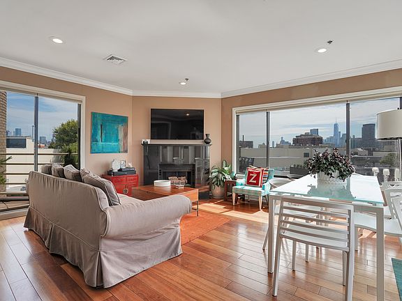 Ultra private penthouse living featuring direct views of NYC with deeded PARKING! This top floor, corner unit is in a 10 unit boutique style elevator building, with only 2 residents per floor. What is unusual about this unit is that despite it being steps from Washington Street, it is extremely peaceful and quiet. Due to the architectural design, none of the units walls touch any walls of the neighboring unit. This means entertaining is not an issue, even on the balcony!! The space is drenched in natural sunlight from the oversized windows, which allow light from all directions. The condo consists of a king size bedroom + den/nursery or home office. The smaller bonus room can fit a twin size bed. It features a spacious, bright and airy open living/dining room with a marble mantel fireplace. There are sliding doors to not one, but two patios! One is a massive, over-sized terrace featuring direct views of the NYC & Jersey City skyline views. The other fits a garden table for 2. The large custom eat-in kitchen has 2018 upgraded stainless steel appliances, granite counter tops and marble flooring. King size master leads to renovated bathroom (2016). Half bath on right as you enter the apartment. Owner will gift a glass shower which was purchased for a board approved renovation to convert the 1/2 bath to a full bath. Only permits need to be filed, should you wish to add an additional shower. Sliding doors are also installed in entry way near living room, should you wish to close that off for privacy. 2018 W/D Laundry in unit, hardwood floors throughout. California Closets installed in all closets. Large storage area near deeded parking spot. The building is also pet friendly... dogs and cats are welcome! We hope you like to entertain because the balcony is the perfect spot for large gatherings, as well as a place to relax with a glass of wine! This is a rare gem and a perfect place to call home!We hope you like to entertain because the balcony is the perfect gathering spot for large gatherings, as well as a place to relax with a glass of wine! A perfect place to call home!We hope you like to entertain because the balcony is the perfect gathering spot for large gatherings, as well as a place to relax with a glass of wine! A perfect place to call home!