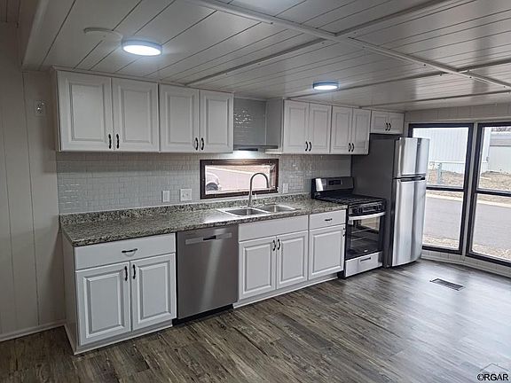 This mobile home is on a lot which includes a fenced in yard, 2 car concrete parking, 8x10 garden shed and a 9x20 covered porch. The interior is freshly painted, it has all new flooring (carpet and vinyl plank), and new kitchen cabinets and countertop. There are new kitchen appliances along with a washer and dryer set. LED Lighting throughout the home. The NG 'on demand' hot water heater is new. Home Warranty will be included in sale.