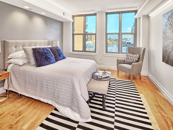 Immediate occupancy Available & one roof deck for purchase. Stunning modern homes featuring 4 bedrooms & 2.5 baths, artfully designed to accommodate the needs of a growing family or the empty nester in the transforming southwest district. New Park opened, new roads & traffic patterns completed, and soon an additional Light Rail Station to be built all add tremendous appreciation to the neighborhood. Great room features balcony, high ceilings, 5-inch black walnut flooring, and custom wall washing LED lighting. Chief inspired kitchen features an unprecedented level of luxury with an expansive 8 ft refrigeration system by Subzero, 30-inch wine cooler, a 48-inch dual fuel Wolf range, Wolf microwave, Bosch dishwasher, Quartz countertops finished waterfalls sides and elongated floating island. Quiet close cabinets and drawers throughout the kitchen. The Master bath is appointed with Hampton Carrera marble flooring, Devonshire Carrera satin walls, oversized shower with Kohler faucets and shower trim, frameless glass shower doors. Washer/dryer room with closet. The home has ample closet space, most with auto lighting. Thyssenkrupp keyed elevator for private access, state of the art Winco windows with acoustical glass, complete with garage parking and virtual doorman. Located in the SW Hoboken, close to Holland & Lincoln Tunnels, Newark airport, across from Hobokenâs newest park currently under construction, near the light rail and an eclectic collection of shops, galleries and restaurants. After a long day relax on your private balcony.