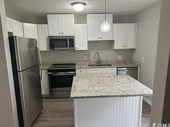 Located only 5 blocks to the Beach on 65th Ave North in Myrtle Beach with No HOA. Spectacular totally renovated from top to bottom, this townhouse has 3 bedrooms with 2 full baths and 1 half bath. Gourmet cooks will absolutely love this brand new kitchen. The Brand New White Shaker Cabinets with soft close doors and drawers make this the perfect kitchen. Gorgeous Granite Counter Tops were just installed along with a large island with plenty of storage and room for dining. Spacious Open floor plan boasts a fabulous living room which has a beautiful new ceiling fan. Luxury Vinyl Floors have just been installed throughout and all interior walls, trim and doors have been recently painted in trendy colors to compliment floor. The downstairs half bath has a new vanity, new faucet, new mirrors, new light fixture, new exhaust fans and a new toilet. The primary bedroom is located upstairs and it has LVP flooring, walk in closet and a large balcony. The plumbing in the kitchen and all three bathrooms is new and it has a brand new water heater, all completed by a licensed plumber. The roof was recently repaired by a licensed roof company and is in good condition. Most of the light fixtures are brand new and were installed by a licensed electrician who rewired most of the home. The primary bathroom has a new white vanity, new light fixtures, new faucets, new shower heads, new exhaust fan and a new toilet. The other two bedrooms have LVP floors and they are located on the second floor. The guest bathroom upstairs has a new white vanity, new mirror, new light fixture, new faucets, new shower head, and new exhaust fans. There's a large private Patio that's perfect for Bar-B-Q's and entertaining friends and family. There's an outside storage area on the patio that's perfect to store beach chairs, surf boards and all of your beach gear. The location is perfect for beach lovers as it's a short walk or golf cart ride to the beach. It's close to Broadway at the Beach, Carolina Opry, Pirates Voyage, Coastal Grand Mall, the hospital and doctors, and the boardwalk in downtown Myrtle Beach. Square Footage to be verified by the buyer.