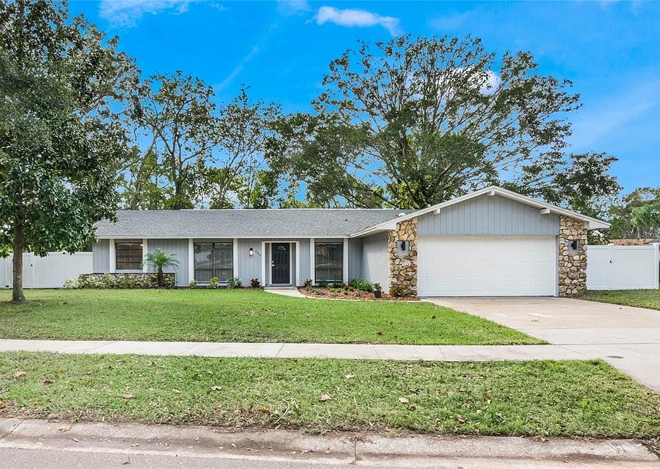 Welcome to this Renovated Home in Altamonte Springs, located in the quaint neighborhood of Brookhollow! A large lot, mature oak trees, sidewalks and a sense of calmness will greet you as you walk up to the front door. The landscaping has been refreshed with new plants, mulch, irrigation and sod throughout. Step inside and be greeted with a welcoming floor plan that is open, yet still allocates space accordingly for all of your important rooms. A large office and dining room are located off of the foyer. Neutral paint colors, newer wood look laminate floors, and plenty of trim offer for a light and bright space. The living room is a stunning focal point of the home, encompassing elegant vaulted ceiling wood work and a modern brick wood burning fireplace. The kitchen has been renovated recently with new cabinets, granite counters, an undermount sink, and stainless steel appliances. The kitchen also has an eat-in dinette space looking out to the large fenced backyard. Multiple sliding glass doors open the inside of your home to the wonderful Florida weather where you can enjoy the oversized Screened Porch. The large Fenced backyard has so many possibilities for your family to use and entertain in. There is plenty of room to build a pool too! The full hall bath is already designed to be a pool bath. The home has a split bedroom floor plan for added privacy, The generously-sized Master Bedroom has newer blinds, a ceiling fan, and a large walk-in "California" style closet with a great ensuite Master Bathroom. The remodeled master bath has a dual vanity with marble-looking granite cabinet tops, newer cabinets, lighting, a framed mirror, and a beautiful walk-in tiled shower. The home has an inside laundry room and a two car garage. This home is move-in-ready with many updated features. Enjoy a NEWER Roof, Electric Panel, AC, Paint, Flooring, Kitchen, Appliances, and Baths! This home is located within close proximity to top rated schools, shopping, entertainment, I4 and much more! Come see this home today to make it yours!