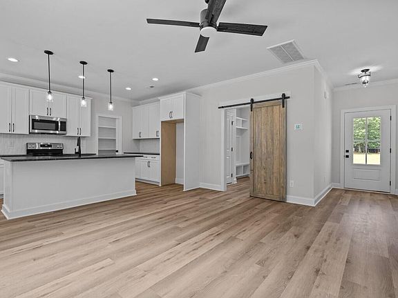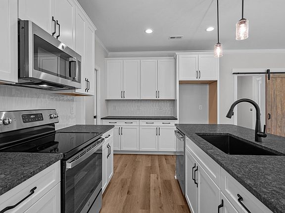 CUSTOM BUILT TRUE RANCH PLAN by Local Builder Braelynn Homes! Nestled on 1+ Acres with NO HOA! The Kitchen offers Steel Gray Leathered Granite Countertops, Custom White Painted Cabinets w/Crown Trim, White Picket Glossy Tile Backsplash, Large Center Island w/Barstool Seating, Designer Glass Globe Pendant Lights, SS Appliances Incl Smooth Top Range, Built in Microwave & Dishwasher, Recessed Lights & Walk in Pantry! Opens to the Family Dining Area w/Chandelier & French Door to the Rear Grilling Deck! Owner's Suite Features Crown Molding, Plush Carpet & Ceiling Fan w/Light with En Suite Owner's Bath featuring Tile Flooring, Dual Vanity w/Granite Countertop & Rectangular Sinks, Walk in Shower w/Herringbone Double Laid Tile Surround & Elongated Niche & Huge WIC! Open Family Room for Entertaining w/Hardwood Style Flooring & Triple Window Overlooking Private, Wooded Backyard! Oversized 2-Car Garage!