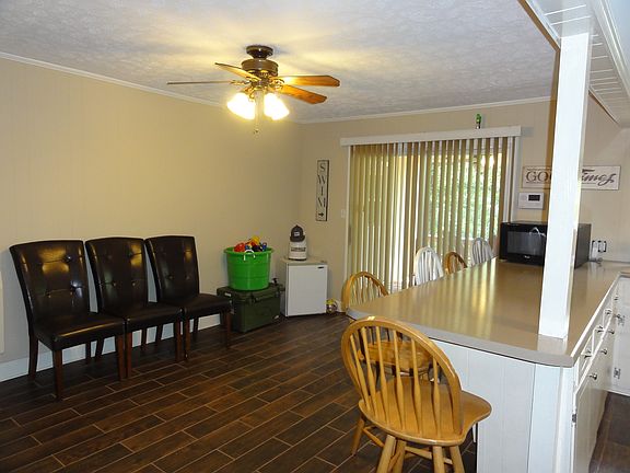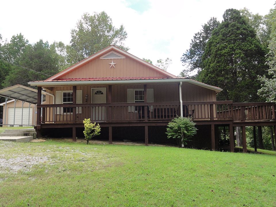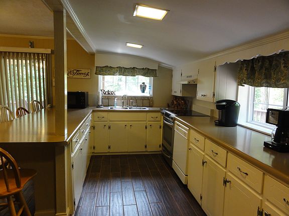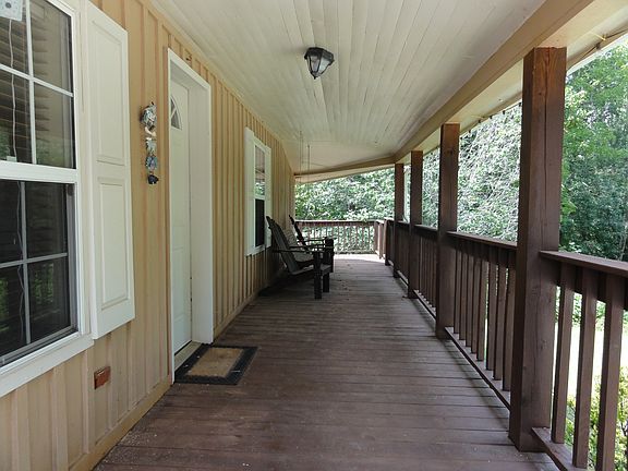 300+ feet of water frontage. Meticulously maintained 2BR/1BA home boasts 1-car garage, boat dock, and serene river view. Additional detached bunk house that sleeps 4 with half bath. Wonderful waterfront living. Covered boat dock, plus 5 acres.