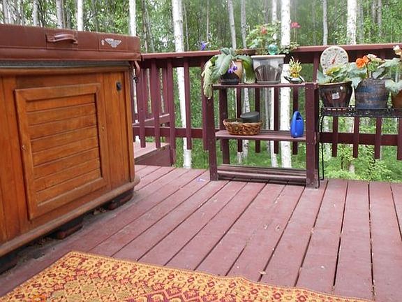Looking for a partially furnished, summer season rental? Have a dog (or two?) Check out this 2 bedroom for rent located just off Chena Hot Spring Rd. This single family home is surrounded by birch trees and close to many trails. Enter the home thru an Arctic entryway and into the kitchen. The laundry is located utility room which also features a shower. A half bathroom is located off the kitchen area. The living room features a vaulted ceiling with floor-to-ceiling windows and direct access to the deck. A working hot tub on the deck is available for tenant use. Upstairs you will find a lofted office nook and both bedrooms. Connecting the bedrooms is a full Jack and Jill bathroom. The large yard has some gardening areas and a greenhouse! This amazing home will be available May 28 with a lease through the end of August or September 7. Rent is $2000/month and includes electric and oil heat. The tenant is responsible for water (holding tank), trash removal, and yard care.