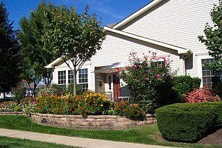 Complete info: http://600bellflowerdrive.ePropertySites.com - Enjoy the amenities that Flowers Mill offers residents over 55 in this immaculate, upgraded Rosewell Villa model with hardscaping and softscaping on a rare large, corner lot. Beautiful beds of colorful annuals surround the yard and the paver patio. Interior boasts wood flooring, custom moldings, bright sunroom and finished second floor loft/bedroom with full bath. The library has a wall of built-in bookcases. Living room has beautiful molding around the gas fireplace, just like the original model home. A bright sun room has tile flooring and custom draperies. Dining room with brass chandelier. First floor master bedroom has upgraded molding in the tray ceiling and bay window. Second guest bedroom and full bath tucked away off a small hallway. Kitchen features 42 inch wood cabinetry and French door separating it from the laundry/mudroom. The laundry is enclosed in its own closet. Carpeted two car garage. Sprinkler System, Security Alarm System. Award Winning Community Center includes Ballroom, card/craft room, indoor and outdoor pool, clay tennis courts, MORE.
