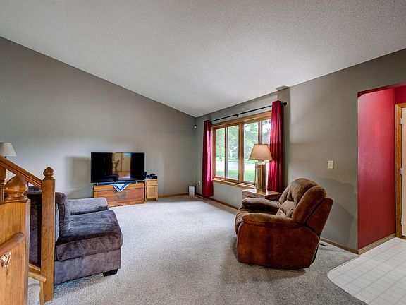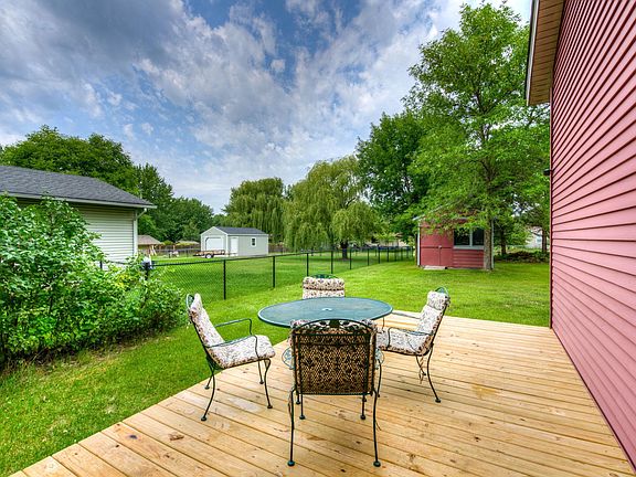 Spacious lot and mature trees welcome you to your classic and tidy home! The large living room has a vaulted ceiling. Step outside your dining room and enjoy your coffee on your new deck or on the pretty paver patio. Other features include durable steel siding, large 12x12 storage shed, and newer water heater. Close to the Rum River and parks and trail!