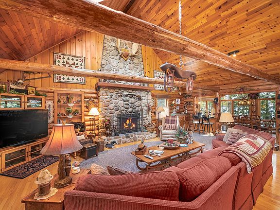 This beautiful full log home wraps you in a big warm hug as soon as you walk through the door! The property is private & the area quiet, perfect for your new home base or a Northwoods retreat. The addition of a Master Suite, new entry & new Dining Room 10-12 years ago only enhanced the beauty of the original home. Every room invites you to sit & stay awhile whether gathering in the spectacular dining area overlooking the lake or curled up in front the majestic floor to ceiling stone fireplace. The bedrooms are spacious so there's room for large groups of family & friends. The lower level offers more space for togetherness or retreating. Two garages offer plenty of toy, vehicle and 'stuff' storage. Lone Stone Lake is great for Musky, Bass, Panfish & Walleye. Bring your skis, kayaks, paddleboards, hiking boots, snowmobiles & snowshoes for four seasons of fun! Convenient to Three Lakes & Eagle River, everything you need is nearby. Make memories that will last a lifetime...