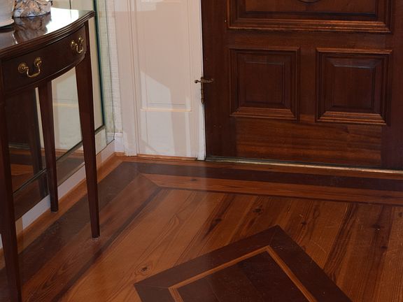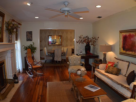 Heart pine floors throughout house including gorgeous custom foyer inlay. Upstairs there is a master suite, guest room with full bath, living room with fireplace, dining room, great room (kitchen/den), and large deck. Downstairs there is another den, two bedrooms, full bath,and large laundry room. 2 car garage. Under the deck is roofed with a concrete pad. House is wired for backup generator with its own shed in backyard. Fenced backyard. Sprinkler system and landscape lighting in front yard. Asking $330,000.