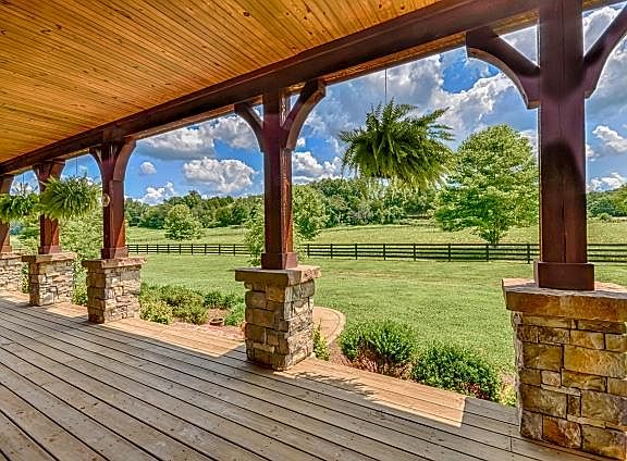 Stunning custom-built luxury home on picturesque 21+ acres. Open floor plan, amazing chef's KT, master on main, all 4 BRs have private baths, walk-out basement w/bar & gym. Fenced pasture, river frontage, spacious 2,400 square foot steel barn outbuilding w/Guest Cottage.