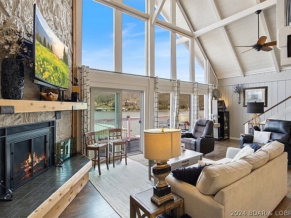 Stunning Lakefront Home & Shop Selling TURNKEY!!! Fully remodeled, it is move in ready and checks all of the boxes! Featuring vaulted ceilings, tons of windows, screened deck, 24x46 garage, and MORE! Main level living with two bedrooms, two baths make this home great for both full time, lake getaway, or short term investment property. Gorgeous cabinets and counters, stone wood burning fireplace, plus tongue and groove make the space have true lake charm and character! Upstairs' loft is so versatile and perfect for a suite, extra sleeping, office space, etc. with a half bath plus has tons of storage on both sides of the walls. The lower level not only has another sleeping area but provides another big flex space and full bathroom. Tons of outdoor entertaining space with the martini deck that hangs over the water's edge and brings the lake life right to you! The 2 slip boat dock includes two boat hoists, two wave runner lifts, multiple hangout areas and is perfect for both relaxing and swimming. Enjoy the calmer cove waters, main channel view, paved roads to driveway, extra parking, and close water/ land location to the famous Red Fox! Flood insurance approximately $1,100 / year. 2024-04-17