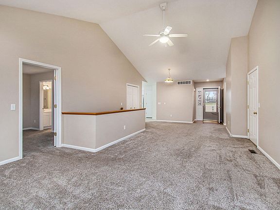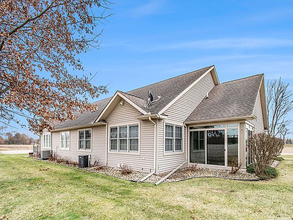This charming condo located in the Meadows 55+ community is ready to move into. . You'll appreciate this 2 bedroom, 2 bath home with over 1200 sq. ft. The open concept dining room and living room with it's cathedral ceilings make for a very comfortable living and entertaining space. The bright kitchen offers plenty of white kitchen cabinets and tons of counter space and all the kitchen appliances. There is a main floor laundry area just off the kitchen. The primary suite is spacious in size and boasts a full bath and huge closet. the 2nd bedroom is also nice sized and shares a 2nd full guest bath. The full basement is currently not finished but offers plenty of storage space and a workbench area. There is also a 3 season room just off the living room which provides plenty of peace and tranquility. The landscape is all mature and features underground sprinkler system. The HOA fees cover snow removal and lawn maintenance. This Condo has been well maintained and is in move in condition.