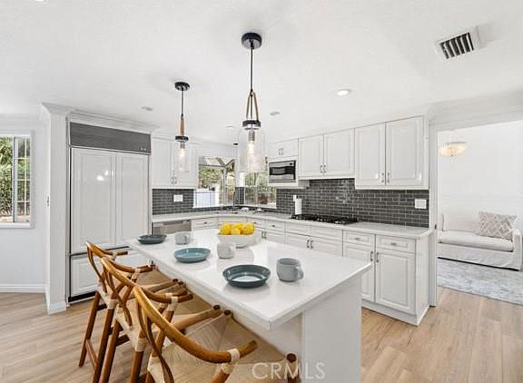 Welcome home to the ultimate dream house with breathtaking ocean views in the coveted Coast District of San Clemente. You really can have it all with this house - The main floor has everything you could need including a spacious bedroom with a full bathroom and shower. Lots of space, striking ocean views, and modern renovations throughout the entire home. The open floor plan is light and bright while letting the soft ocean breeze flow through all the rooms. Imagine entertaining friends and family on your large, ocean view deck while the sun is setting on the horizon. With 4 bedrooms and 3 bathrooms, you have plenty of room for everyone to feel comfortable and right at home. Bask in the ocean views from 2 of your bedrooms and from the outdoor deck. The primary suite features an oversized walk in closet, 2 vanities, a bathtub, and shower. Youll enjoy gorgeous modern updates throughout the whole home including new luxury vinyl plank flooring, fresh white paint, white shaker cabinets, white quartz countertops, and modern light fixtures.. If you like to cook or spend time in the kitchen, you will greatly appreciate how picturesque yet functional the kitchen is with the high end appliances and big island. Relax with a good book next to the cozy ambiance of the crackling fireplace while sipping your favorite drink. Just 1.5 miles from the beach you can choose to walk, e-bike, or drive. Your drive time to the beach is just 4 minutes; by the time you pick out a song for the drive youll already be seeing the crashing waves. This house could not be in a more idyllic location being just minutes from fine dining, world class surf spots, iconic beaches, and excellent shopping including the San Clemente Outlets. Your life of luxury awaits you at your exquisite beach house escape.