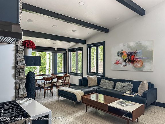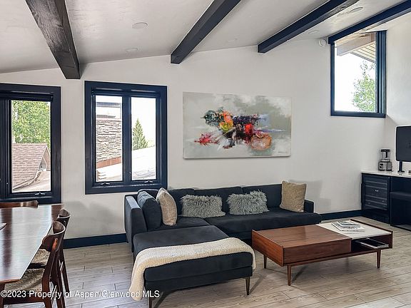 Newly Remodeled, stunning condo at the upper mall of Snowmass Village, Colorado! This top-floor gem boasts 2 bedrooms, 2 baths, and an impressive 1070 sq ft of living space with vaulted ceilings, creating an open and airy feel. Step inside and be greeted by the beautifully remodeled interior, completed in 2023. The space is adorned with new LED lighting throughout, featuring the state-of-the-art Savant lighting system. Enjoy the convenience of Savant Shades and thermostats, allowing you to effortlessly control the ambiance and temperature in every room. Full Savant control for audio and video speakers in every room ensures a premium entertainment experience. The living room and guest bedroom each showcase sleek Frame TVs which when not in use transform into artwork masterpieces of your choice. The master bedroom is equipped with an impressive 8k TV for your viewing pleasure. This home has been meticulously updated, including new appliances, tile flooring, and paint. The kitchen boasts new cabinets, creating a modern and functional space. The addition of a Ring Doorbell enhances security, while a smoke alarm system with flood detection offers peace of mind. Ample storage is available in the attic, providing a convenient solution for your belongings. Step outside and discover the incredible exterior features of this property. Take a dip in the heated swimming pool, relax on the sun deck, or fire up the BBQ grill for an al fresco dining experience. Two hot tubs provide the perfect spot to unwind after a day of adventure. Stay active and healthy with access to the fitness center and steam room. For those who love outdoor pursuits, this home offers 2 ski closets and 4 bike storage spaces. Parking is a breeze with the convenience of parking directly in front of the unit. Perks of the Aspenwood complex include low HOA dues and unlimited owner usage, contrary to the majority of Snowmass Village Condos. Low carry costs make this a great option for primary home buyers and investors alike. You can also enjoy the ease of a free shuttle to the airport and around Snowmass Village, allowing you to move about with convenience. Don't miss out on this incredible opportunity to own a nicely updated home in Snowmass Village. Easy to show - experience the luxury and convenience this property has to offer!
