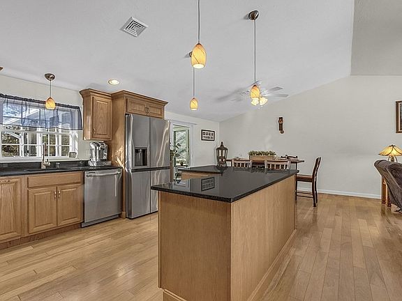 - Features: Cathedral Ceiling(s), Flooring - Wood, Countertops - Stone/Granite/Solid, Kitchen Island, Cabinets - Upgraded, Open Floorplan, Recessed Lighting, Remodeled, Stainless Steel Appliances, Lighting - Pendant, Lighting - Overhead
