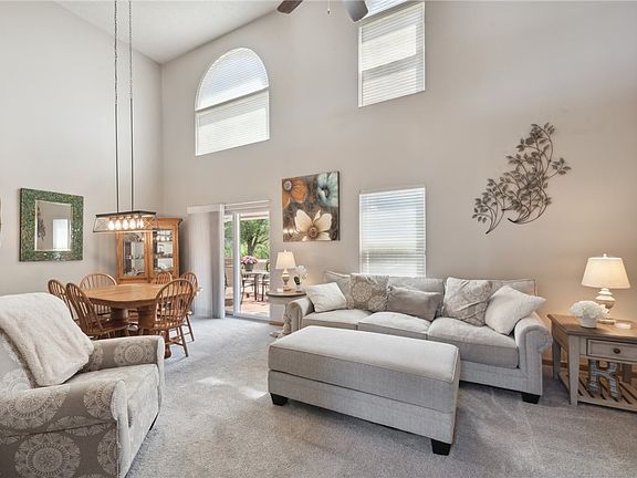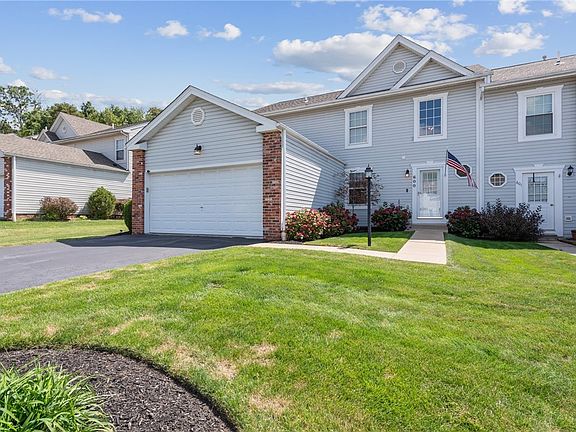 Beautifully landscaped, move in ready,end unit townhouse! An open & bright floor plan greets you on level entry. The main floor boasts a spacious living & dining area with 17' vaulted ceilings,new carpeting,updated lighting and ceiling fan. Walk out from the dining room onto the large deck with retractable awning into a level back yard with firepit. The eat-in kitchen has ample cabinetry,new black SS appliances which includes a double oven. Also on the first floor is a large en-suite primary bedroom with new carpeting, walk-in closet and full bath. Laundry,updated powder room & access from attached two car garage finish the main level. Upstairs, find 2 additional bedrooms,another full bathroom and a flex loft area that overlooks the main floor. The newly remodeled lower level is stunning with a home theatre area with leather theatre chairs with seat surround,risers,and screen.Lower level also has a modern gas fireplace with remote,beverage cooler and an updated full bath.Welcome home!