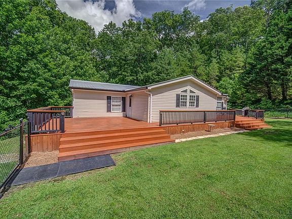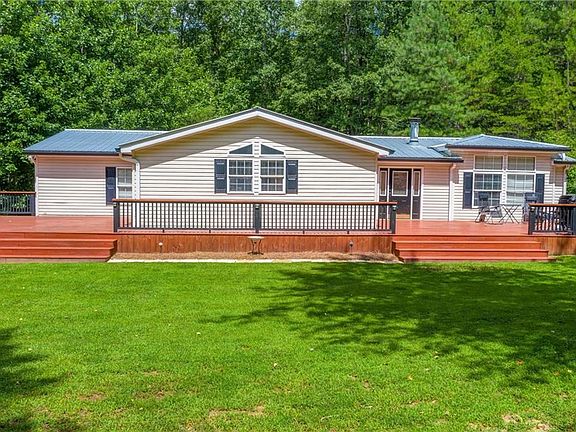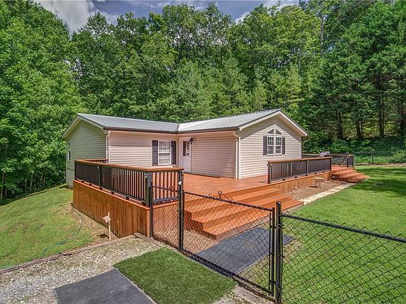 Module home w/ 6 stud walls on 3.51 acres. Eat in kitchen w/ white cabinets, floors are HD tiles simulating Ash planks, which is great for any spills, laminate counters & stainless steel appliances. Large Master bedroom on main & spacious secondary rooms. Wood burning fireplace in the spacious living room. Large deck w/ fenced backyard w/ no road noise. Ac and Dryer duct system cleaned 2018. Car port, re-rocked driveway and a creek on property. Brand new AC and Heating unit added in 2018.
