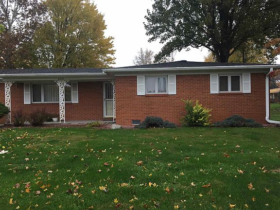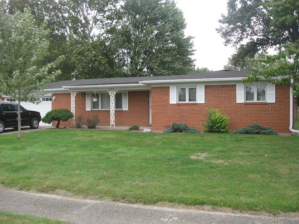 Brick Ranch with 1409 square feet. Living room, dine-in kitchen, 3 bedrooms, 1 1/2 baths, total electric. Updates include vinyl windows, newer water heater & softener, overhead garage door. Newer laminate flooring in dining area & kitchen. This home offers a small 2 car attached garage, a covered front porch and covered rear deck. Don't miss the fenced back yard and storage shed. Estate sale, property offered "as is".