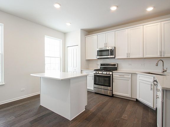 This Chelsea home boasts upgraded 42" kitchen cabinets with soft close drawers and doors, Quartz counter tops with GE Profile appliances, beautiful hardwood floors throughout the main level, ceramic deluxe shower with seat, 9' First floor ceilings. Brand New and waiting for you! These Townhomes will feed to Prairie Grove Elementary and Middle School and then head to Prairie Ridge High School. Pictures are from a current unit! Mid-March delivery!