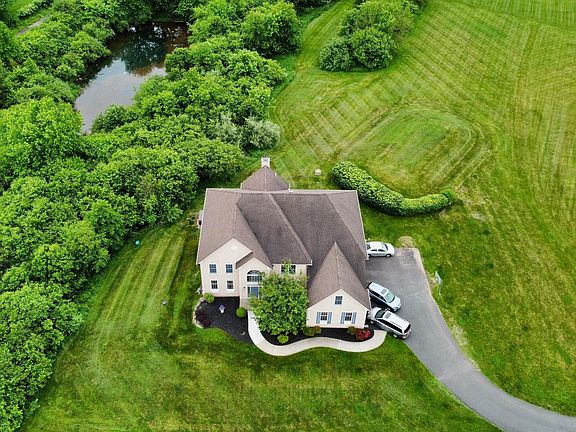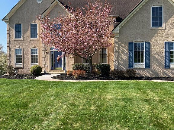Welcome to this beautiful home where you get the best of both worlds - you are a part of a neighborhood but you have the feeling of being in your own little oasis with your own private pond where you can enjoy fishing or even a little peaceful floating! Enter into the soaring two story foyer brightened by a huge palladium window and featuring gleaming hardwood floors that flow thru out most of the first floor. Enjoy formal entertaining in your living room with crown moulding and dining room with tray ceiling both located off either side of your foyer and both with two large windows to let in the sun. You couldn't enjoy cooking more in one of the most custom kitchens I have ever seen equipped with everything you need to either cook casually for your family or for those large gatherings. The kitchen features a large island with a second sink and your cooktop and is enhanced with a raised breakfast bar, upgraded stainless appliances including a double oven for all of your baking needs, tons and tons of upgraded cabinetry and counters, a huge walk-in pantry and a desk area. Enjoy casual dining in your breakfast area in the kitchen or in the glorious conservatory off the kitchen enhanced with a vaulted ceiling with ceiling fan, windows on every wall and a triple french door leading out to a deck where you can enjoy a cup of coffee while over looking your expansive back yard. Enjoy cozy nights by the fire in your dramatic two story family room enhanced with a raised hearth brick fireplace with custom mantel and moulding and lots of windows to let in the natural light and located right off your kitchen for ease of casual entertaining or family time. Your private office is tucked away behind your family room so you can actually use it as an office and not be worried about your guests seeing your messy desk! There is a powder room next to the office featuring a gorgeous custom stained glass salad bowl style sink. A large laundry room with a window and shelving round out this floor. Upstairs has all been freshly carpeted and leads you to the double door entry to an expansive primary suite large enough to fit all of your furniture. Enjoy quiet time reading in your private sitting room adjacent to your bedroom. There is also a dressing room featuring two large walk in closets with organizers and wait until you see the his-n-hers bathrooms - literally. There are two sides to the bathroom which share the large walk-in shower - one side has it's own vanity with upgraded salad bowl style sink and private water closet with toilet and the other side features vaulted ceilings, also it's own vanity with upgraded salad bowl sink and toilet and also has a large jetted jacuzzi tub with two windows above where you can enjoy a nice relaxing bath after a long days work and when you step out your towels will be warmed by the hardwired towel warmer - pure decadence! There are three other nice sized bedrooms with large windows and custom moulding with two sharing a Jack-n-Jill bath with double vanity sink and there is also another full bath in the hallway. And if that isn't enough space you can finish the huge basement that has roughed in plumbing for a future bath and a sliding glass door leading out to a private E.P. Henry patio overlooking the private pond that is nestled in the trees that lines your yard and creates all the privacy you could want. A three car garage with a long driveway for plenty of parking for your huge family gatherings and the close proximity this home is to shopping and conveniently located close to the turnpike to get you anywhere you need to go quickly will want you to make you call this home!