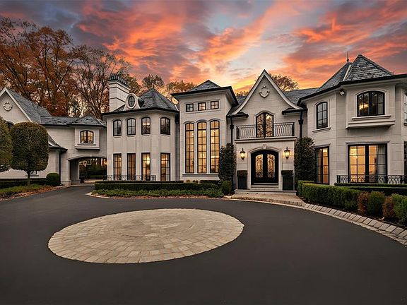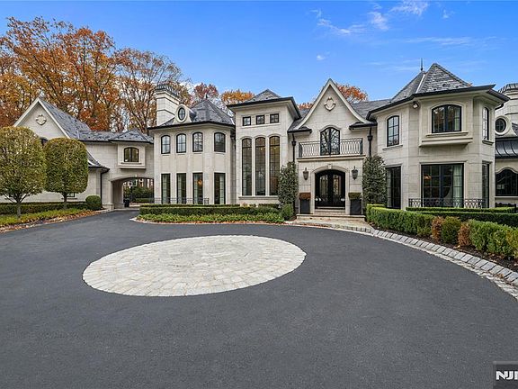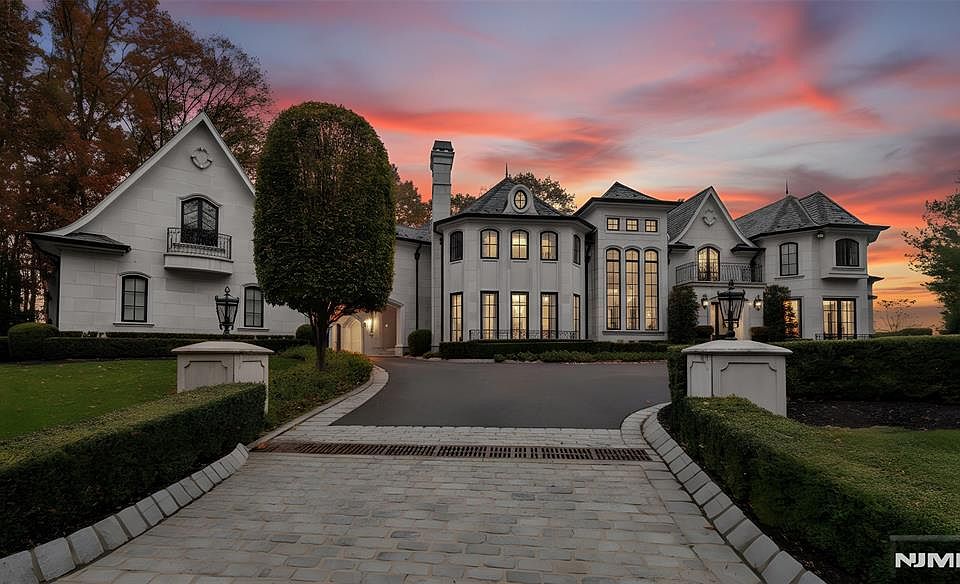 Breathtaking French Chateau style estate perched on one of the highest points in River Vale, offering sweeping mountain views and set at the end of a quiet cul-de-sac. This extraordinary residence seamlessly blends elegance, craftsmanship, and modern luxury, featuring 6 bedrooms, 5 full bathrooms, and 3 half bathrooms. Enter through the impressive two-story foyer with a sweeping staircase and enjoy beautifully proportioned formal and informal spaces, including a gourmet chef's kitchen with butler's pantry, a dramatic two-story great room with fireplace, formal living room, piano room, sophisticated bar, handsome study, breathtaking library with fireplace, and an elegant dining room with its own fireplace. The grand staircase leads to the second level, where open views overlook the great room below. This floor features two private en-suite bedrooms, two additional bedrooms connected by a Jack-and-Jill bath, and the exquisite primary suite, complete with FP, dual walk-in closets, spa-caliber marble bath, private sitting room, and a balcony showcasing serene park-like grounds and mountain vistas. Additional highlights include 4 garage spaces with a porte cochere and meticulous architectural details. The newly finished lower level further elevates the home with a large recreation room, custom bar, guest bedroom, 1.5 baths, and a home gym. A spectacular residence that truly makes an unforgettable impression.