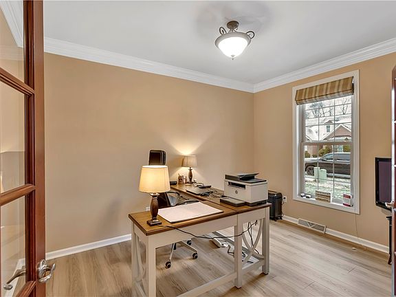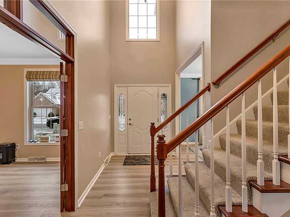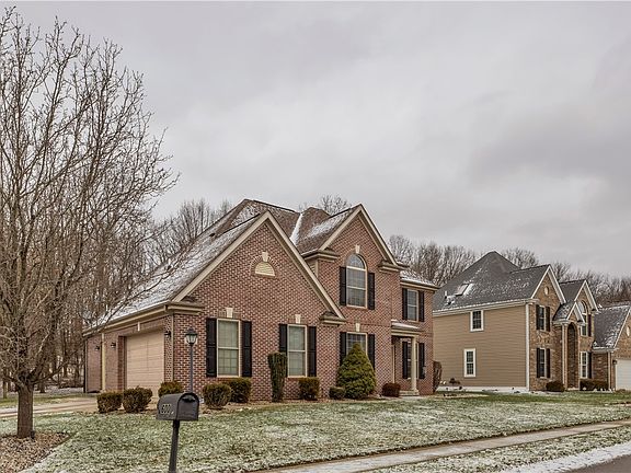 This Kaclik built home is located in Heritage Creek on a level lot. The 2 story entry is bright and open to the formal dining room. The first floor den with French doors is the perfect at home office. The eat in kitchen features double ovens, a gas cook top, pantry and a kitchen island. It opens to the spacious family room with gas fireplace. The first floor laundry is conveniently located near the attached garage and has a utility sink. The second floor owner's suite features large walk in closet, a tiled shower, soaking tub, double bowl vanity and ceramic tiled floor. The remaining 3 bedrooms offer abundant closet space and use the main bath with double bowl vanity. There is an additional storage room through the bedroom closet in bedroom 4. The finished lower level has an electric fireplace and a full shower bath as well as a large storage room. Heritage Creek offers a community center, swimming pool, and playground.
